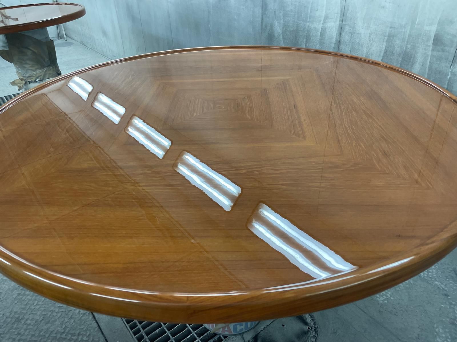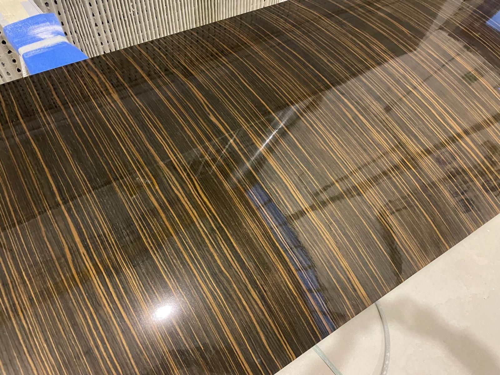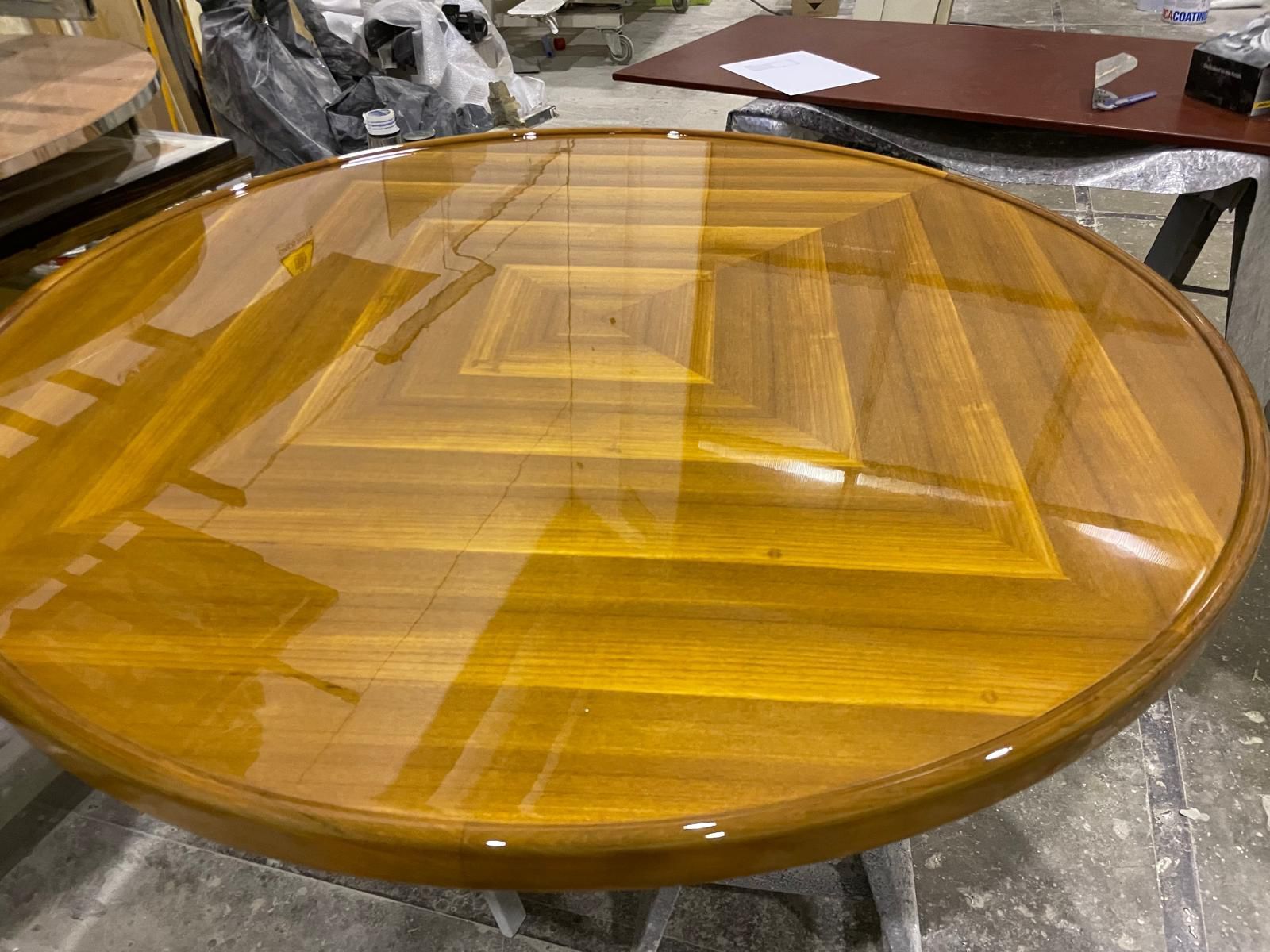 - Protective Finish: Once the color has been restored, a new transparent protective finish (polyurethane varnish, UV resin) is applied to protect the wood from future environmental damage.